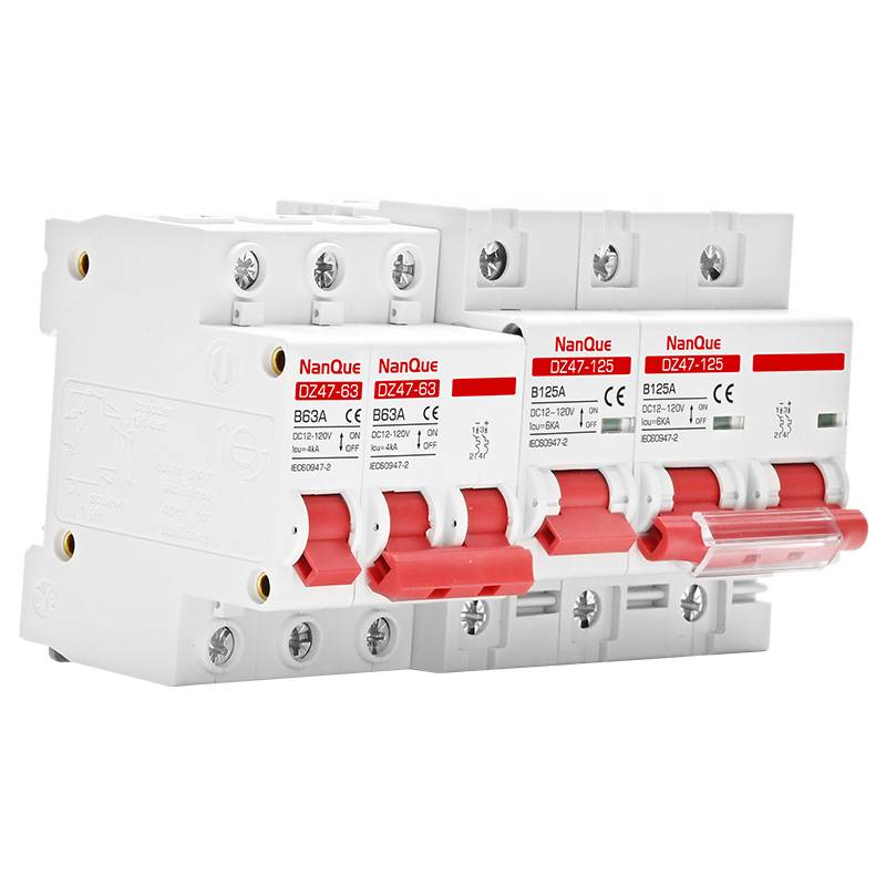 DZ47-63 (Type B) is a special circuit breaker for storage battery circuits. It is specially used in scenarios such as electric vehicles, motorcycles, lighting circuits, switching power supplies, UPS power supplies, and security monitoring circuits. For lines with a single-pole rated DC voltage of 12V-120V and a rated current of up to 63A, it provides overload and short-circuit protection. Meanwhile, it can also be used as a switching device that does not frequently switch on and off under normal conditions. This product complies with the GB10963.2 and IEC60947-2 standards.
